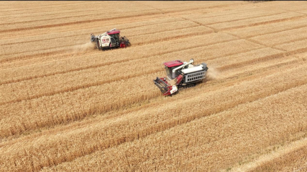 農服懷遠公司全程社會化服務面積30000畝,午收工作正有序推進,至26日已完成1萬畝小麥的收割任務,27日起開始了剩余2萬畝訂單小麥的收割和烘干入庫。為確保收割任務按時完成,公司共投入收割機56臺,全力保障在30日前完成全部午收任務。該公司還圍繞水稻機插秧和玉米、高粱種植壓茬推進夏種工作,目前已種植4000多畝。