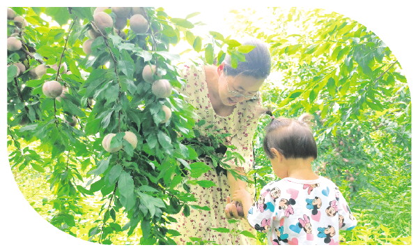市民游客帶著孩子來(lái)體驗(yàn)采摘。