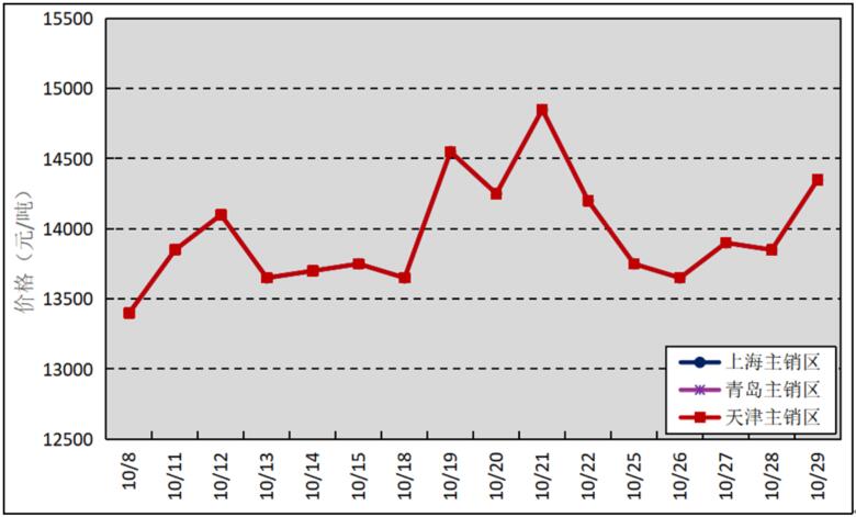 圖3  2021年10月國(guó)內(nèi)主銷區(qū)天然橡膠價(jià)格走勢(shì)