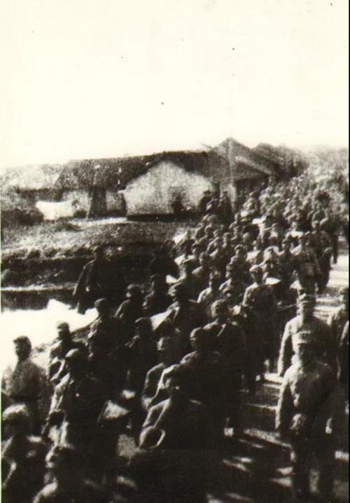 1952年4月22日凌晨,農(nóng)建四師的全體將士,全副武裝,沐浴著帶露的晨曦,揮師北上,向蘇北黃海之濱,蘇北灌溉總渠下游兩岸出發(fā)。出發(fā)時(shí),海門(mén)縣縣長(zhǎng)茅錫堂率黨政機(jī)關(guān)、學(xué)校、團(tuán)體和從四面八方趕來(lái)的數(shù)萬(wàn)群眾,敲鑼打鼓,在路邊歡送。
