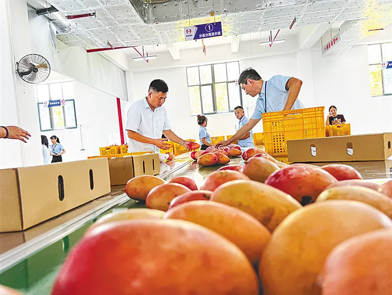 工作人員在打包芒果。海南日?qǐng)?bào)全媒體記者 袁琛 攝