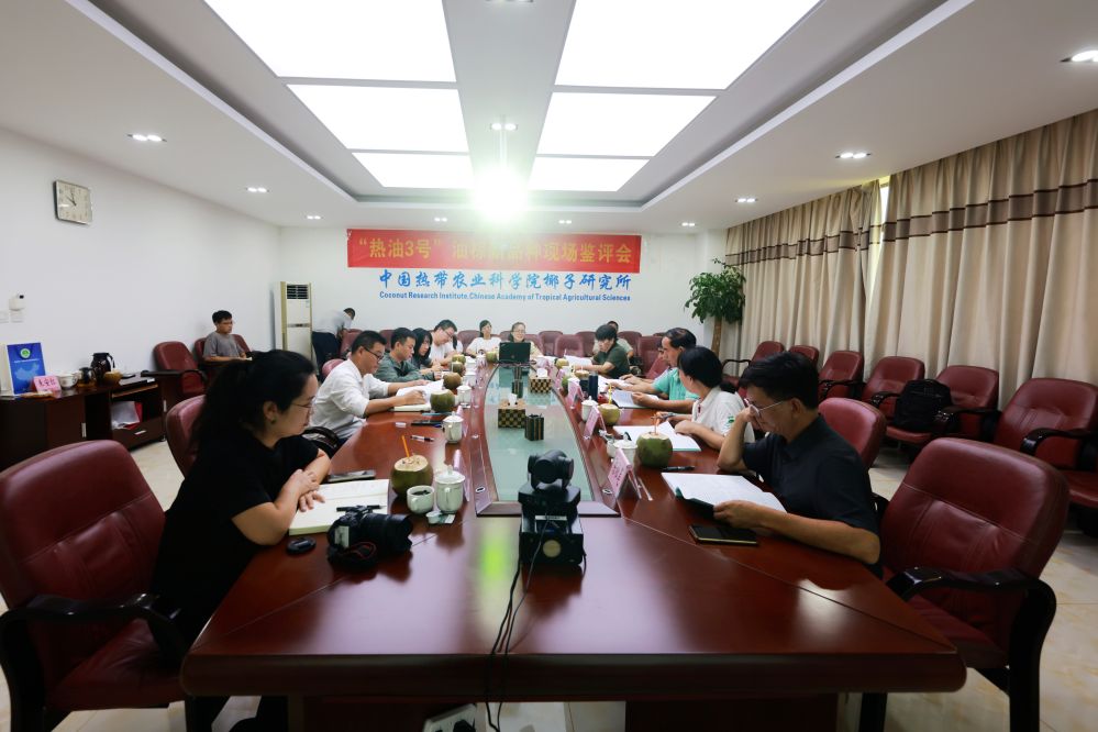 根據(jù)“熱油3號(hào)”油棕新品種選育單位中國(guó)熱帶農(nóng)業(yè)科學(xué)院椰子研究所等的申請(qǐng),2024年8月9日,全國(guó)熱帶作物品種審定委員會(huì)組織鑒評(píng)專家組,在海南文昌對(duì)申報(bào)的“熱油3號(hào)”油棕新品種進(jìn)行現(xiàn)場(chǎng)鑒評(píng)。
