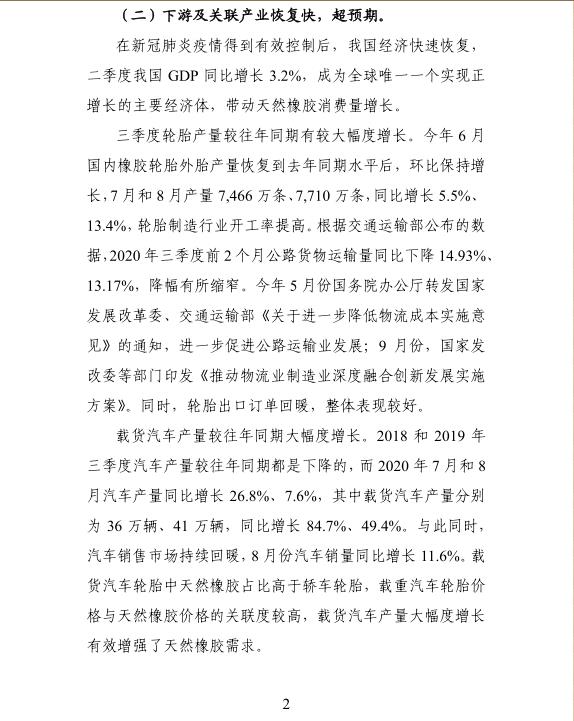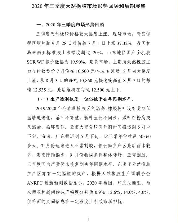 2020年三季度天然橡膠市場形勢回顧和后期展望