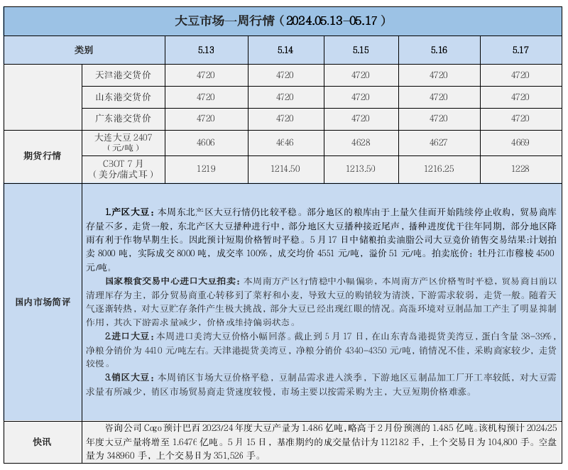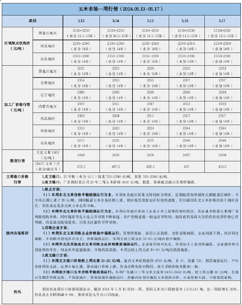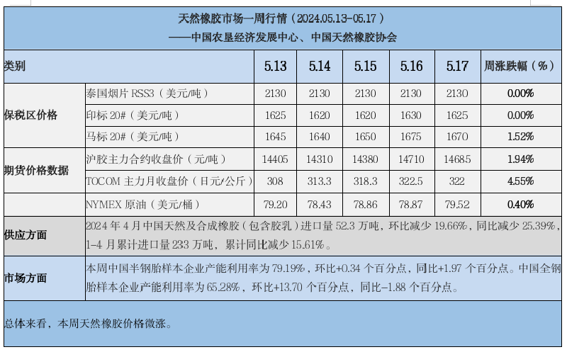 天然橡膠、大豆、玉米市場(chǎng)一周行情(2024.05.13-05.17)