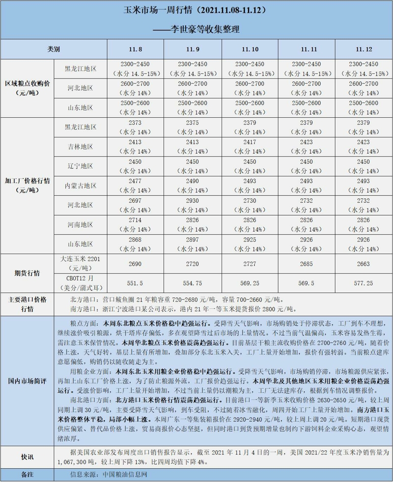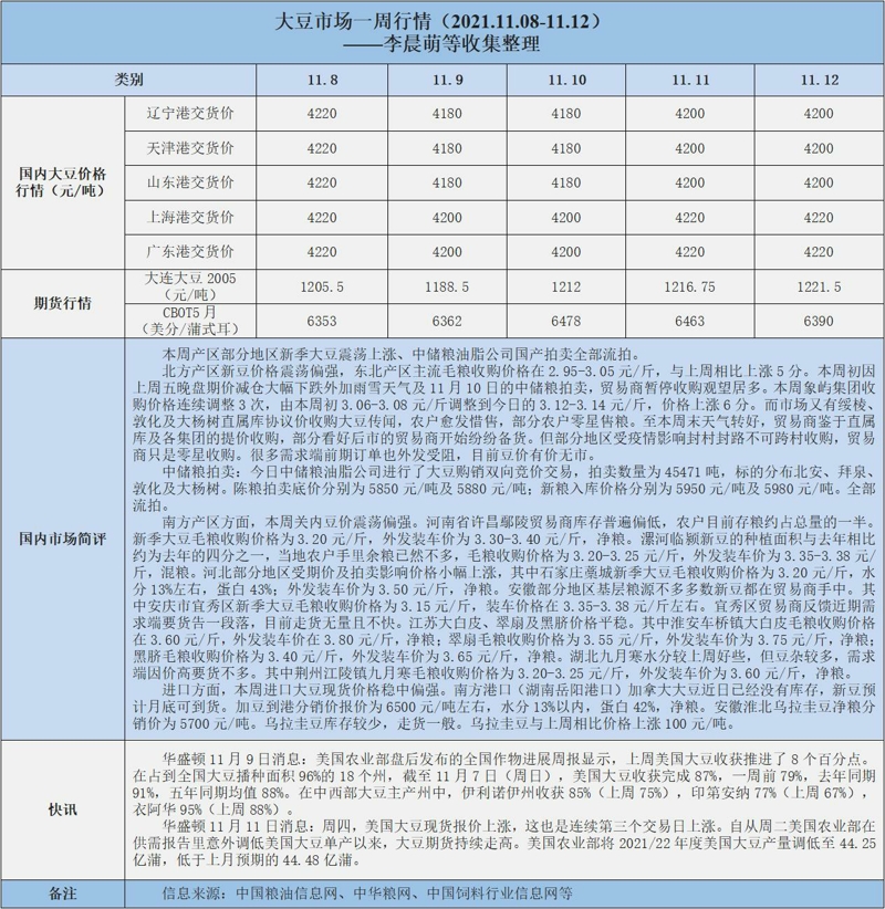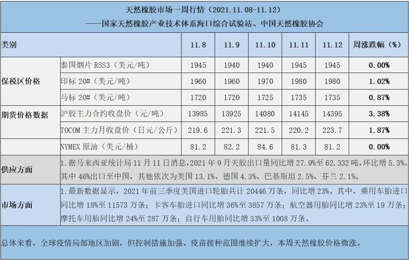 天然橡膠、大豆、玉米市場一周行情(2021.11.08-11.12)