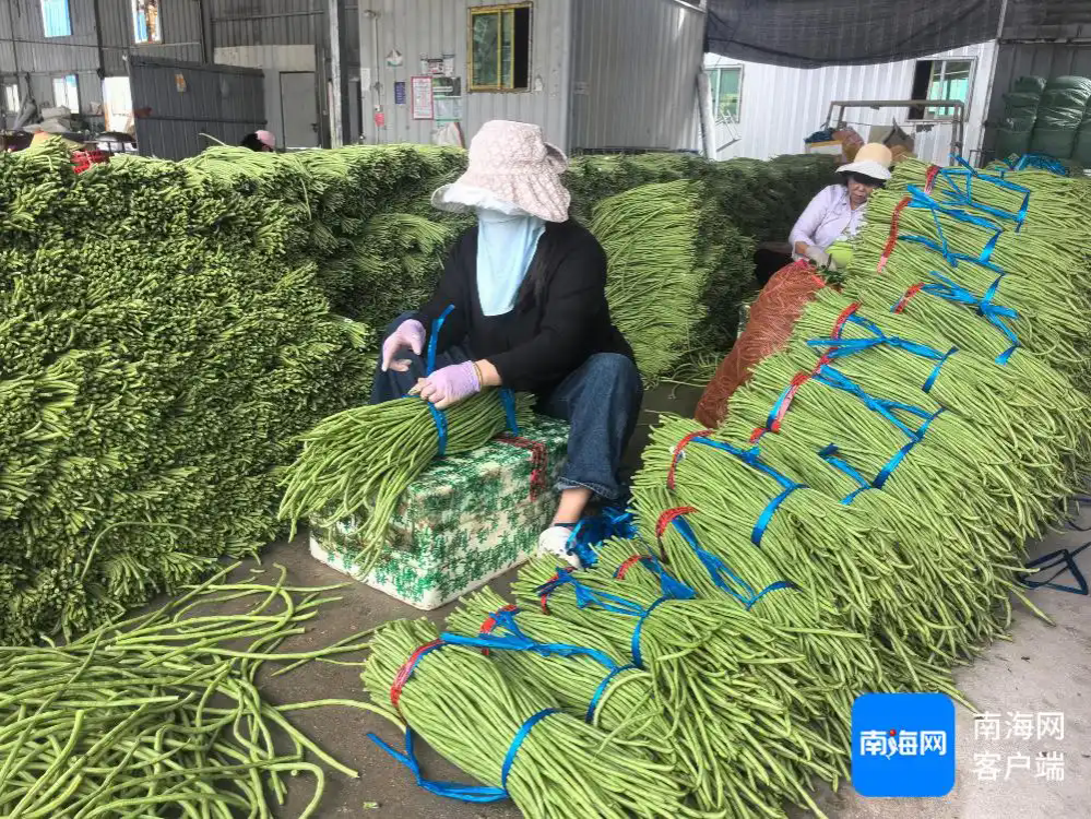 三亞崖州果蔬批發(fā)市場,工人在打包豇豆。記者 利聲富 攝