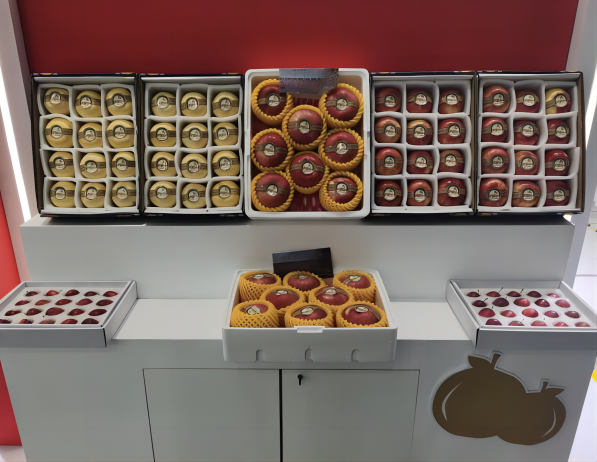 產(chǎn)品特色:“王鳳臺(tái)”紅富士:果面潔凈、色澤艷麗、品質(zhì)優(yōu)良。果實(shí)為大型果,平均單果重180-300克。果實(shí)多為扁圓形,果形指數(shù)0.8左右,少數(shù)果近圓形。果皮光滑,有光澤,中厚而韌,蠟質(zhì)中多。套袋成熟果實(shí)果面鮮紅色霞或條霞。果點(diǎn)圓形,較明顯,中大,較密,陽(yáng)面果點(diǎn)黃白色,陰面果點(diǎn)黃色。果肉黃白色,致密,細(xì)脆多汁,有清香,酸甜適口。王鳳臺(tái)蘋果可溶性固形物含量不低于14.5%,酸含量在0.2%—0.3%,果實(shí)硬度8.5kg/cm2~11kg/cm2。10月中下旬成熟既可鮮食,亦可加工成果脯、果干、罐頭、果酒及果醬等。蘋果的耐貯性非常好,貯藏后伴有香氣,可貯至翌年六月。