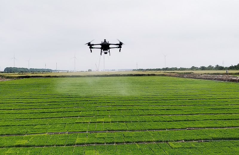傍晚時(shí)分,三口外拓基地的秧池內(nèi),一臺(tái)裝載著液體肥的無(wú)人機(jī)正在田間忙著噴肥作業(yè)。在農(nóng)技人員的精準(zhǔn)操控下,無(wú)人機(jī)按照預(yù)定路線,將霧化的肥液均勻噴灑到稻田里。三口外拓基地在農(nóng)業(yè)生產(chǎn)中大力推廣應(yīng)用無(wú)人機(jī),實(shí)現(xiàn)了農(nóng)業(yè)生產(chǎn)的高效化、智能化和精準(zhǔn)化。