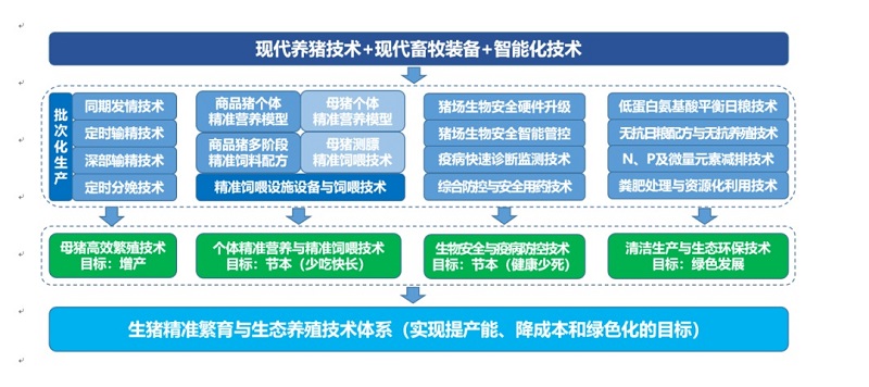 生豬精準(zhǔn)繁育生態(tài)養(yǎng)殖技術(shù),聚焦母豬批次化生產(chǎn)與高效繁殖、精準(zhǔn)營養(yǎng)與個體精準(zhǔn)飼喂、生物安全與疫病防控以及清潔生產(chǎn)與生態(tài)環(huán)保等重大需求,貫穿育、繁、料、管、病、糞、設(shè)施設(shè)備等一系列重要環(huán)節(jié),進(jìn)行全產(chǎn)業(yè)鏈技術(shù)組裝集成,為我國生豬產(chǎn)業(yè)提檔升級和產(chǎn)能恢復(fù)提供技術(shù)模式,為非洲豬瘟防控和糞污資源化利用提供技術(shù)支撐。