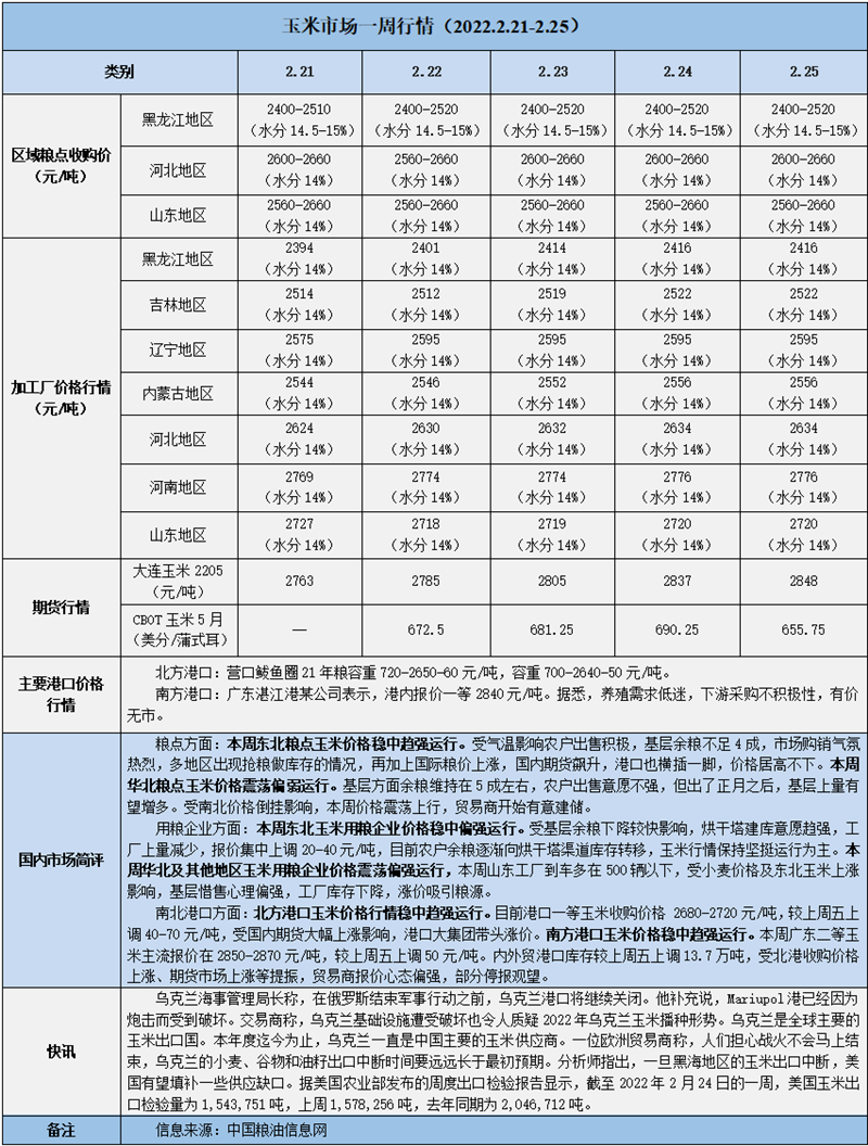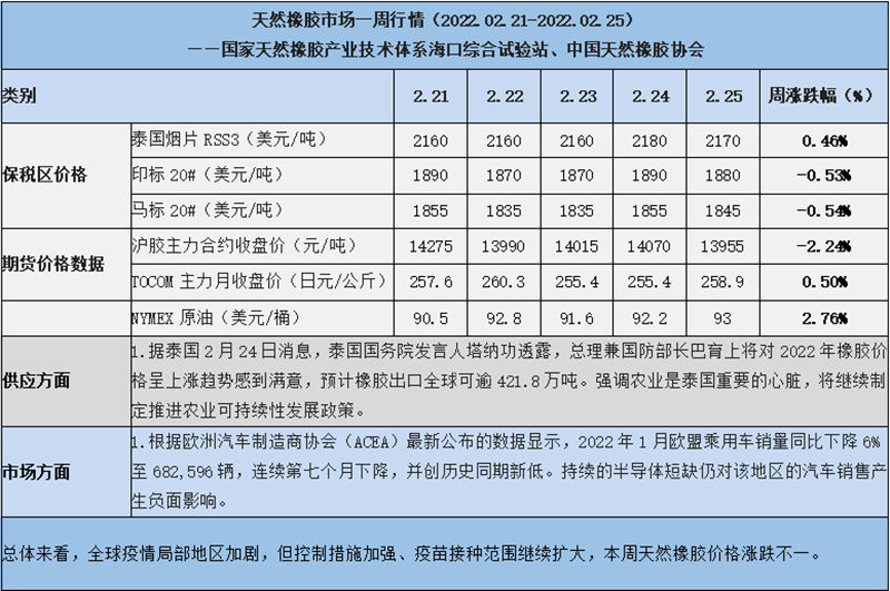 天然橡膠、大豆、玉米市場(chǎng)一周行情(2022.02.21-02.25)