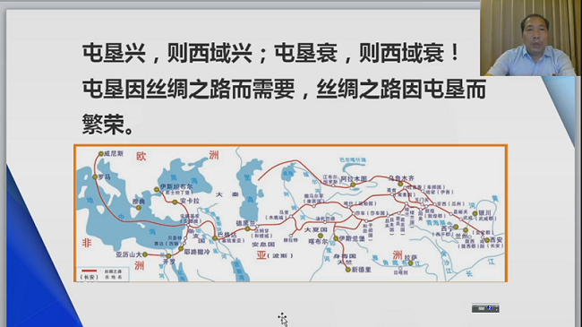 任新農(nóng)副校長(zhǎng)結(jié)合自己多年來(lái)對(duì)新疆屯墾、西域文化、兵團(tuán)歷史、三五九旅精神的研究,從古到今,由遠(yuǎn)及近,向觀眾娓娓講述了西域新疆屯墾的歷史脈絡(luò),展現(xiàn)了西域新疆色彩斑斕的歷史和人文畫(huà)卷??梢哉f(shuō),一部古代的西域新疆的屯墾戍邊史,就是一部西域新疆社會(huì)文明進(jìn)步史,它貫穿了西域新疆社會(huì)發(fā)展的全過(guò)程。從古代新疆屯墾的“都護(hù)絲路”、“屯田積谷、應(yīng)對(duì)邊事”,到現(xiàn)代兵團(tuán)的“屯墾戍邊、建城戍邊”,使命基本一致,初衷目標(biāo)均為“戍邊”。