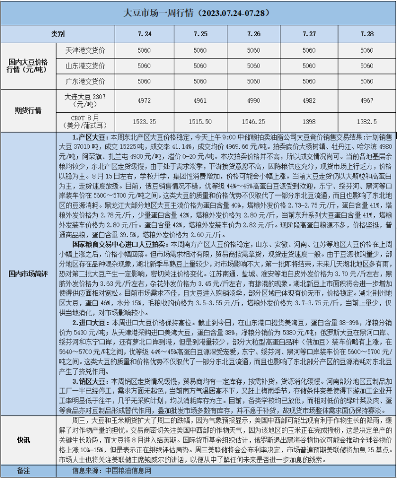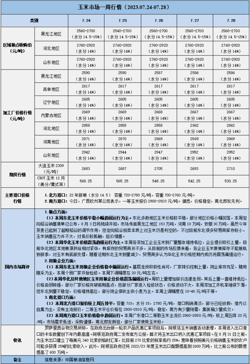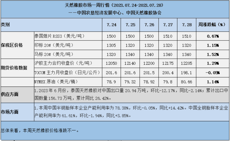 天然橡膠、大豆、玉米市場(chǎng)一周行情(2023.07.24-07.28)