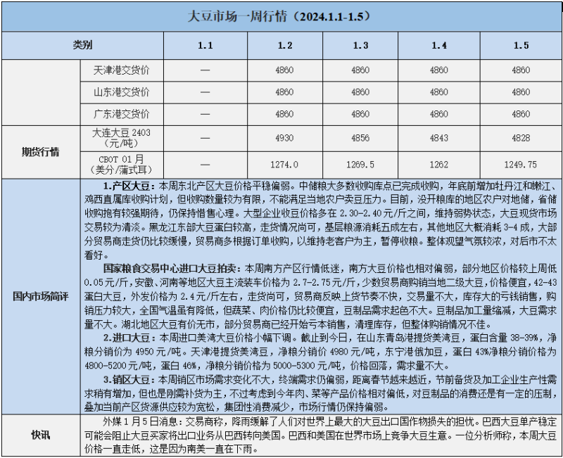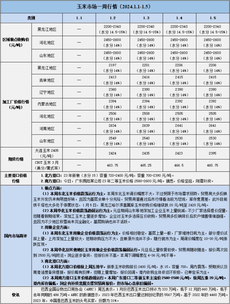 天然橡膠、大豆、玉米市場(chǎng)一周行情(2024.1.1-1.5)