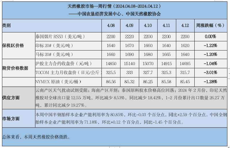 天然橡膠、大豆、玉米市場一周行情(2024.04.08-04.12)