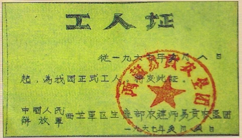 新疆生產(chǎn)建設(shè)兵團(tuán)南下建設(shè)易貢,把標(biāo)準(zhǔn)的軍墾管理制度帶到了易貢。這是1967年西藏易貢農(nóng)墾團(tuán)工人證,是易貢歷史上普通百姓的第一張身份證明文件。