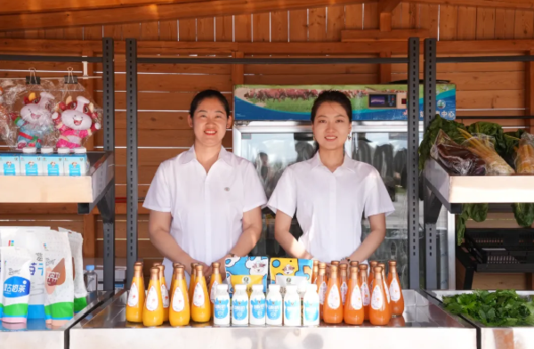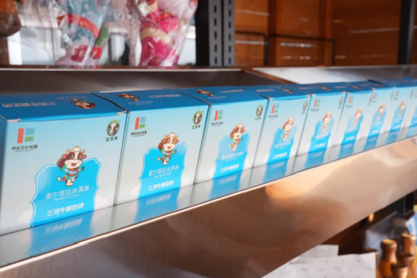 展示廳內(nèi),三河牛酸奶、奶酪、鮮奶磚,黃瓜、南瓜、茄子以及各類文創(chuàng)產(chǎn)品整齊劃一地陳列在展示架上,從新鮮的蔬菜水果、優(yōu)質的三河牛乳制品,到獨特的文創(chuàng)產(chǎn)品,無不體現(xiàn)了謝爾塔拉農(nóng)牧場公司對品質的嚴格把控和對消費者的用心服務。