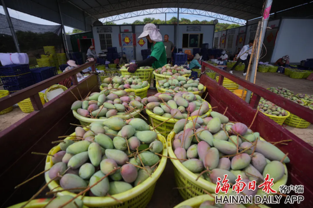 5月13日,樂(lè)東黎族自治縣黃流鎮(zhèn)新建村芒芒噠農(nóng)民種養(yǎng)殖專(zhuān)業(yè)合作社芒果基地一派繁忙景象。果園深處,綠油油的芒果樹(shù)上吊著一個(gè)個(gè)誘人果子,采摘工人們忙碌地挑選著成熟的貴妃芒,動(dòng)作熟練而有序。