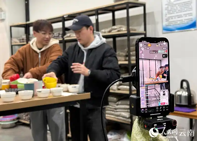“手沖拍8號鏈接,它是我們家的招牌咖啡豆,風(fēng)味上有橙花、烏龍茶和焦糖的香氣;或者是9號鏈接,來自云南保山海拔1500米生長的一款豆子……”位于昆明經(jīng)開區(qū)的時(shí)澄咖啡的電商直播間里,很是熱鬧。