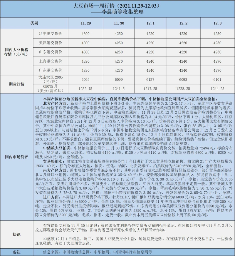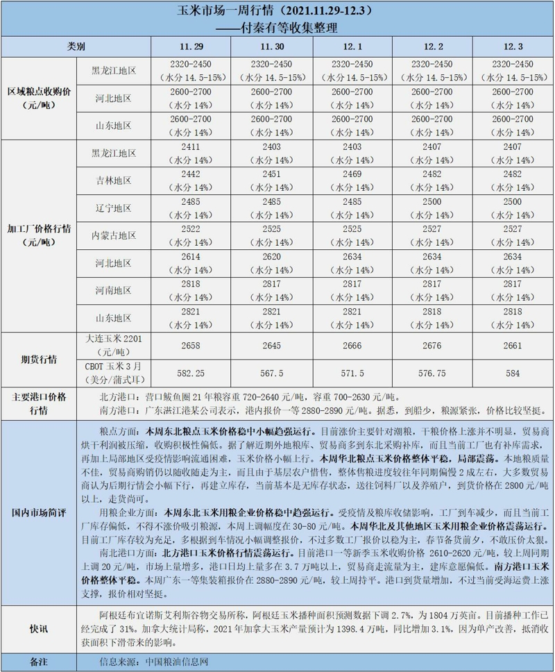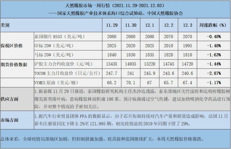 天然橡膠、大豆、玉米市場一周行情(2021.11.29-12.03)