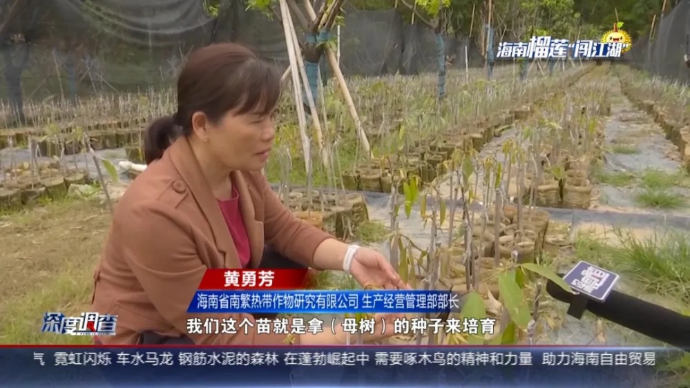 海南省南繁熱帶作物研究有限公司 生產(chǎn)經(jīng)營管理部部長 黃勇芳:現(xiàn)在我們就是研究怎么樣把我們的母樹作為一個新品種培育出來,因為榴蓮一般是5年到6年結果,需要兩代以上才能看,那大概也要十年以上。