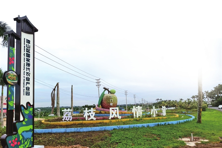 從??诔霭l(fā),沿223國(guó)道一路南行,在一片一眼望不到邊的荔枝園旁,一顆碩大的“荔枝”闖入眼簾,旁邊“荔枝風(fēng)情小鎮(zhèn)”幾個(gè)大字,讓人馬上意識(shí)到已抵達(dá)三門坡鎮(zhèn)。