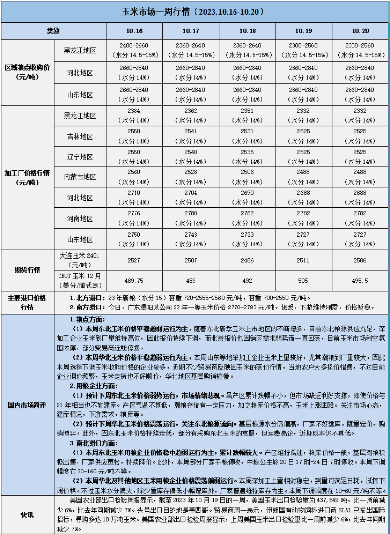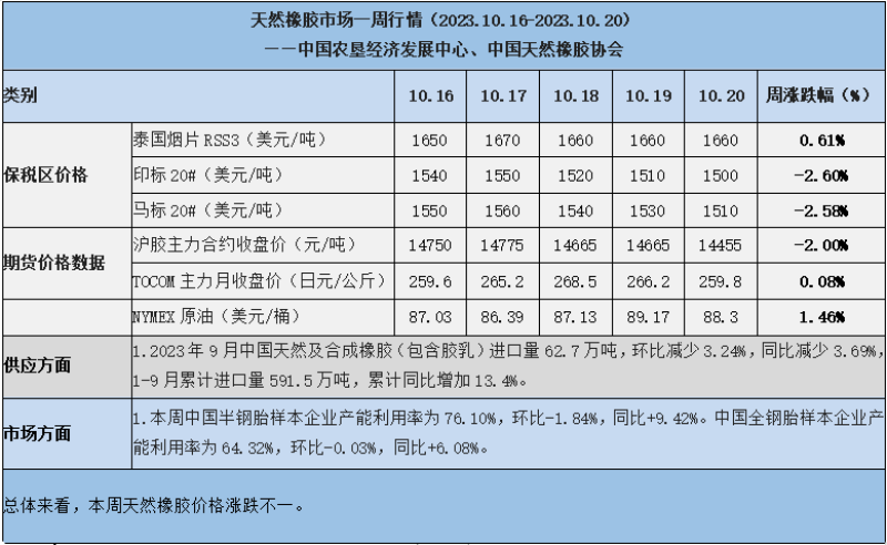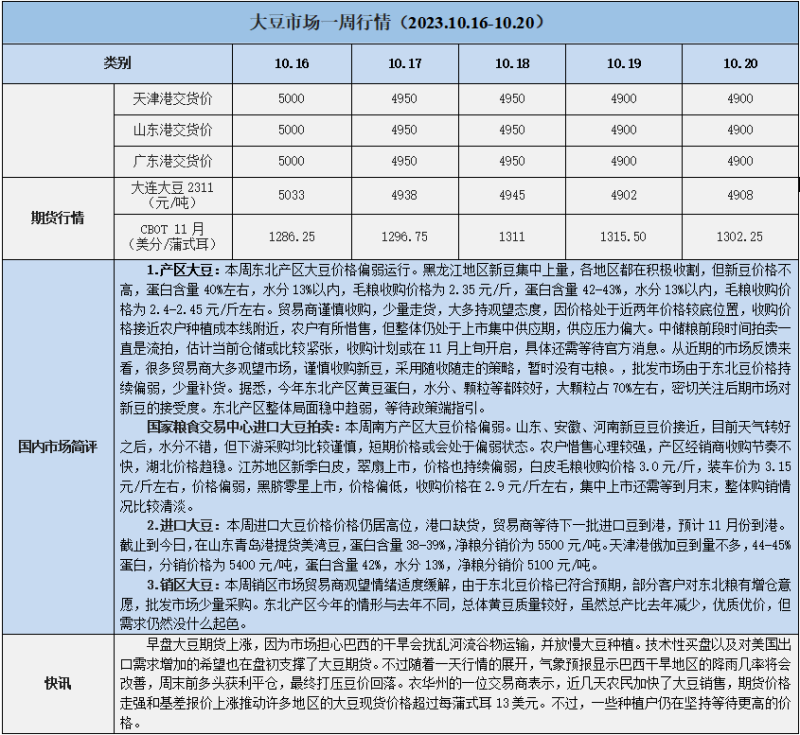 天然橡膠、大豆、玉米市場一周行情(2023.10.16-10.20)