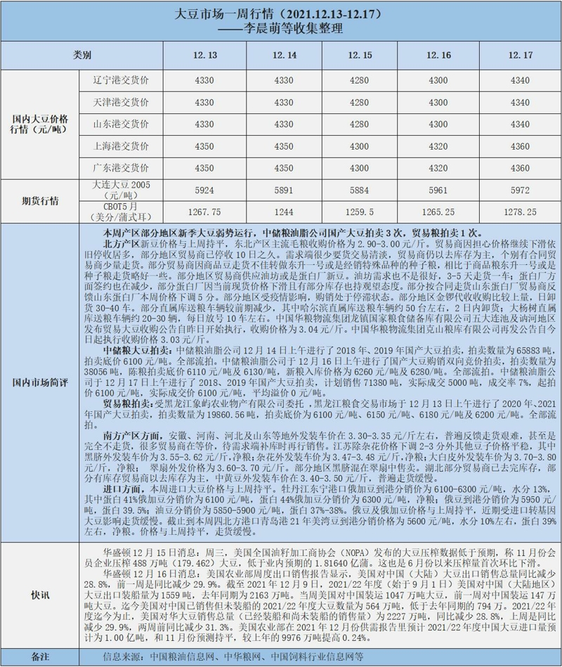天然橡膠、大豆、玉米市場(chǎng)一周行情(2021.12.13-12.17)