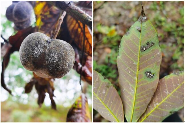 季風(fēng)性落葉病果及葉片癥狀