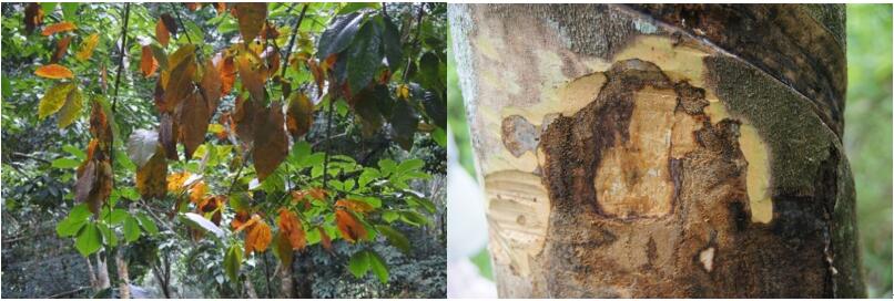 在厄爾尼諾和拉尼娜共同影響下,8月份以來,各地已進(jìn)入高溫多雨天氣,極易引發(fā)季風(fēng)性落葉病及割面條潰瘍病的發(fā)生和流行。季風(fēng)性落葉病的流行規(guī)律是高濕環(huán)境有利于流行,沿江河兩岸及山凹地帶,通風(fēng)條件差,冷涼環(huán)境有利于發(fā)病。云南植膠區(qū)晝夜溫差較大,已在勐臘縣、江城縣陸續(xù)發(fā)現(xiàn)季風(fēng)性落葉病的發(fā)生。橡膠樹病蟲害監(jiān)測與防控項目專家組提醒,近年有季風(fēng)性落葉病發(fā)生的產(chǎn)區(qū)要密切監(jiān)測,同時做好割面潰瘍的監(jiān)測與防治工作。