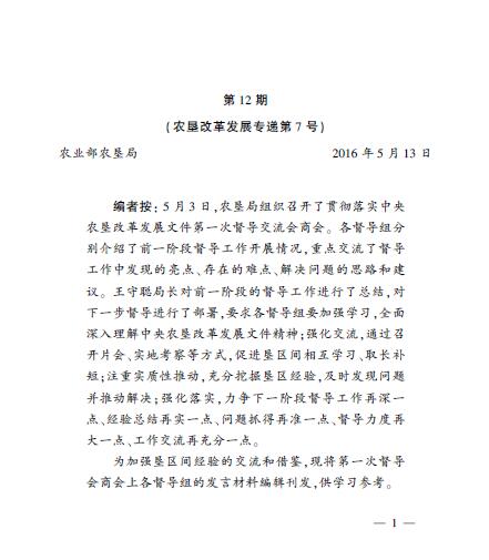 農(nóng)墾情況第12期(農(nóng)墾改革發(fā)展專遞第7號(hào))
