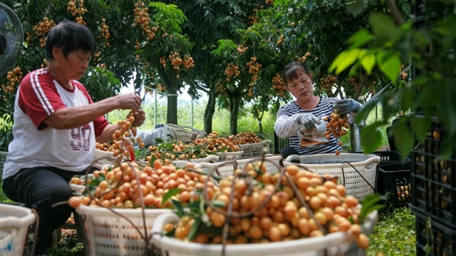 盛夏時節(jié),甜果溢香,廣西桂林市平樂縣張家鎮(zhèn)桃?guī)X自然村黃皮種植基地進(jìn)入集中采收期。放眼望去,金燦燦的果實(shí)綴滿枝頭,果農(nóng)們穿梭林間,靈巧的雙手熟練地摘下成熟飽滿的果實(shí),隨后將多余的枝葉摘除,放入裝運(yùn)筐中??諝庵袕浡S皮果特有的清香,與果農(nóng)們的歡聲笑語交融,構(gòu)成一幅生動的豐收畫卷。