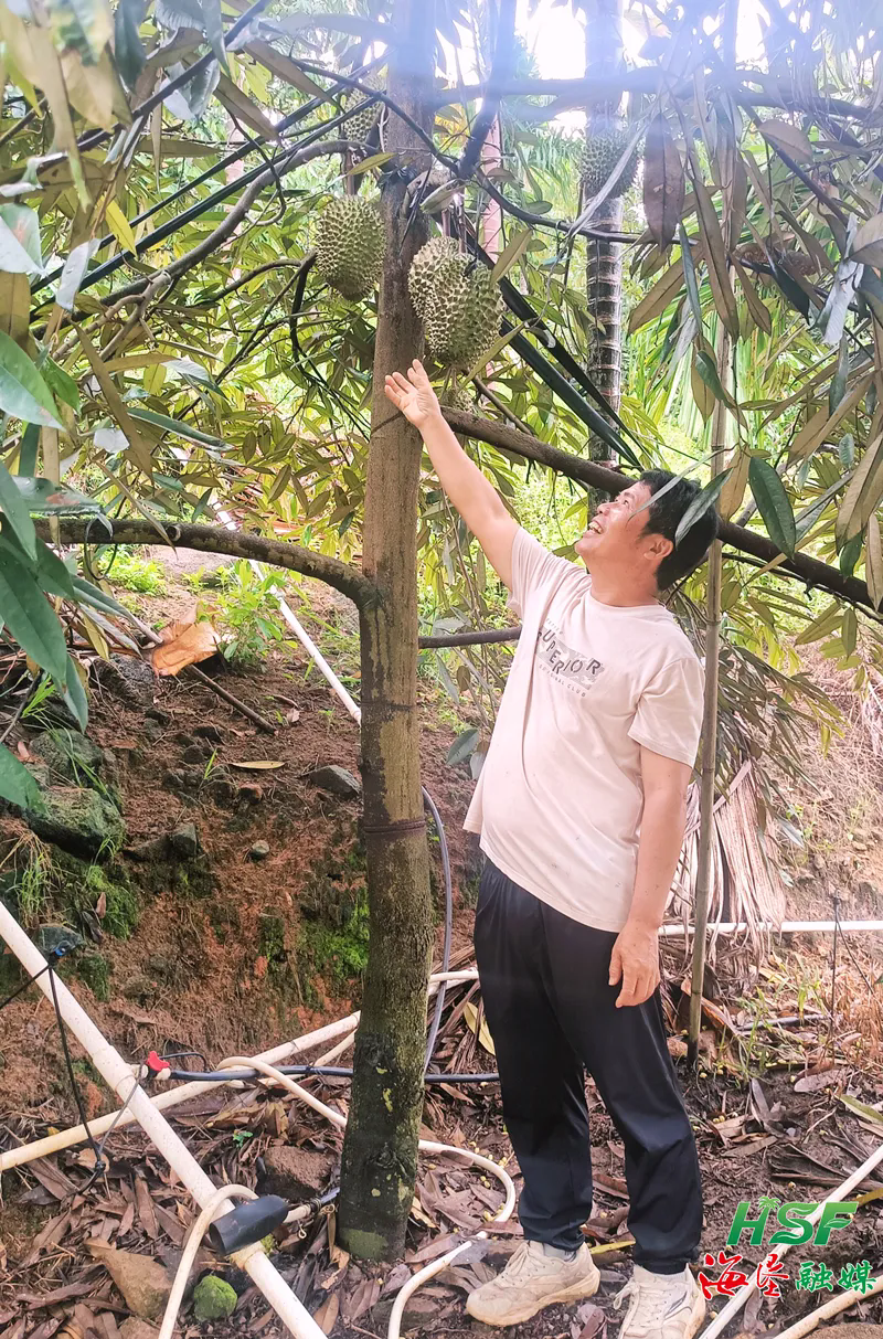 6月3日,在金江農(nóng)場公司南茂片區(qū)茅叢山上的九號榴蓮園,園主譚德隆望著樹上日漸成熟的果實,心中充滿了期待。
