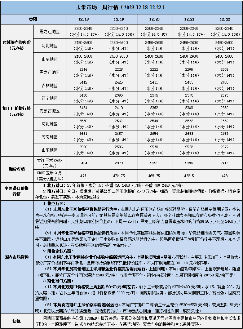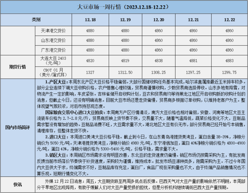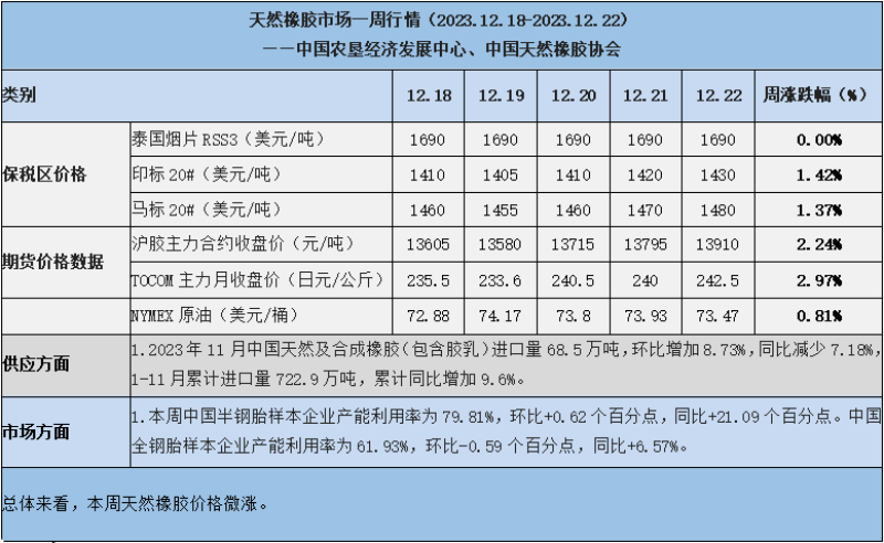 天然橡膠、大豆、玉米市場一周行情(2023.12.18-12.22)