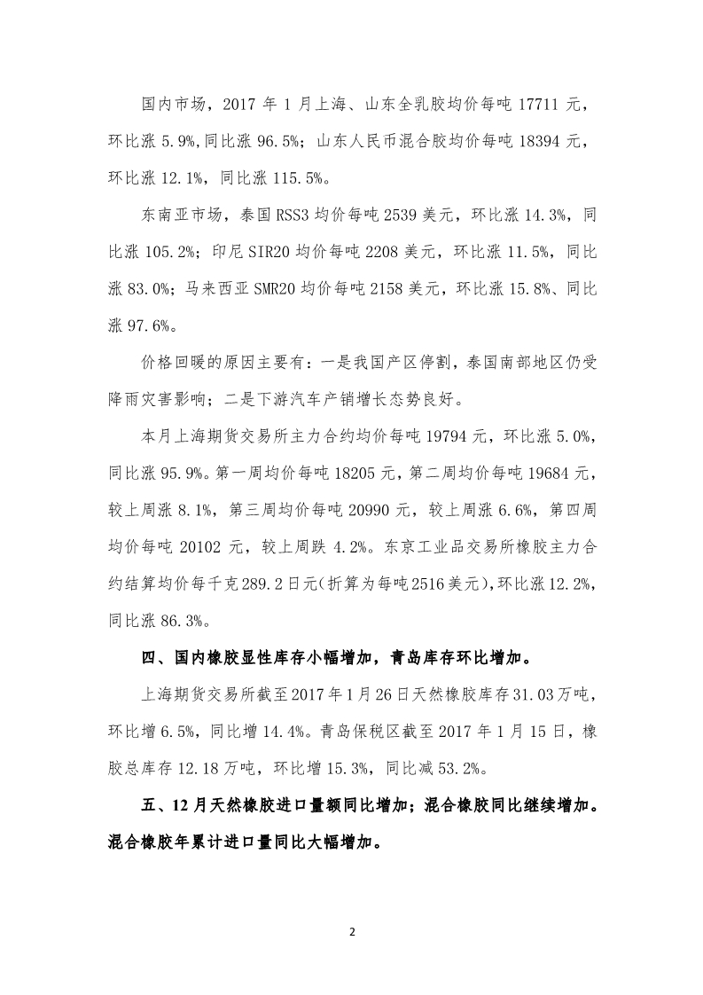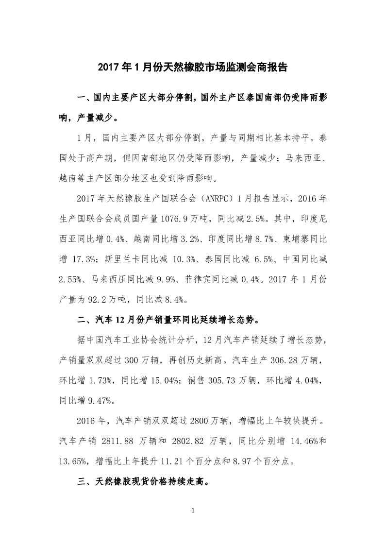 2017年1月天然橡膠市場(chǎng)監(jiān)測(cè)會(huì)商報(bào)告
