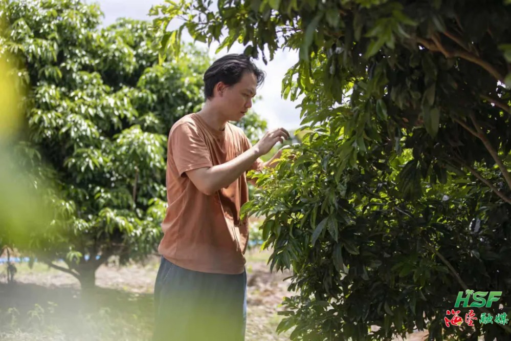 紅明農(nóng)場公司旗下海南荔海實(shí)業(yè)有限公司副總經(jīng)理李精華拿著手機(jī)和筆記本來到這里,一一觀察每株荔枝樹,記錄它們的生長情況。