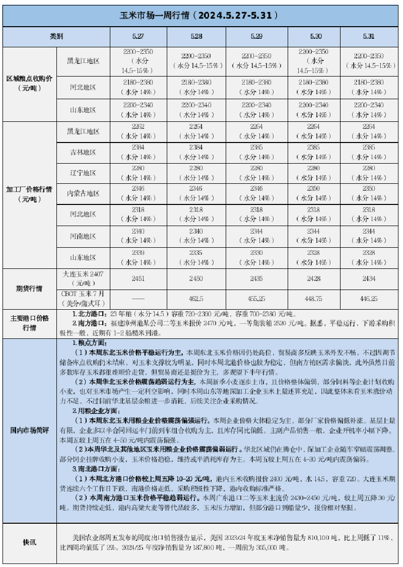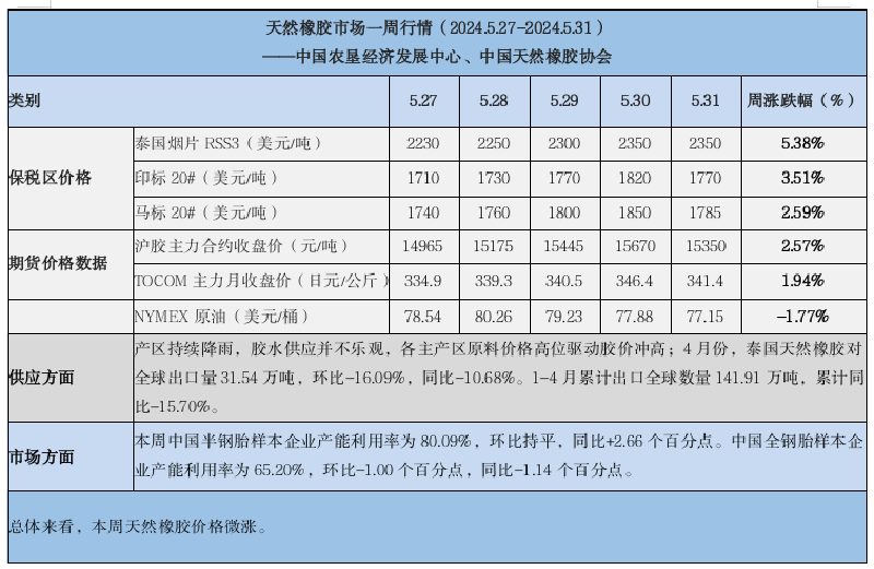 天然橡膠、大豆、玉米市場(chǎng)一周行情(2024.05.27-05.31)
