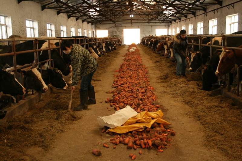 大概過了10多天,我找個拉貨的車去了十二隊,趕巧隊長不在,我把場長批條給畜牧技術(shù)員,可能隊長早交代過,畜牧技術(shù)員領(lǐng)我到犢牛室,看到兩組犢牛:一組在欄桿里面趴著或站著的犢牛,大都體型好、身腰長、花片好、乳房均稱;另一組在欄桿外散撒著有六七頭毛色雜、花片不不好、奶頭也小,相對看質(zhì)量差一些。