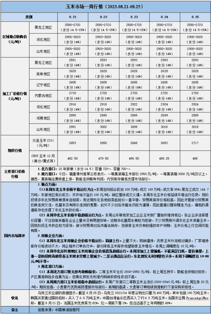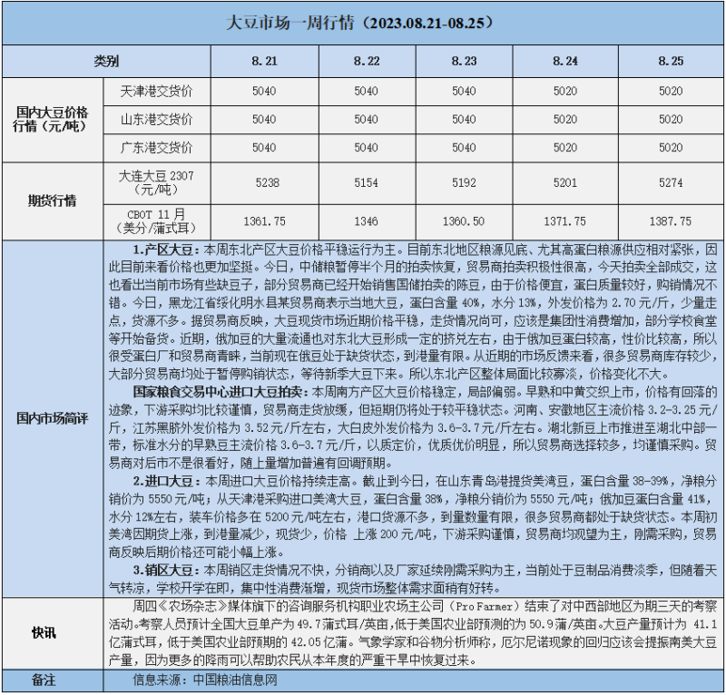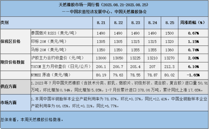 天然橡膠、大豆、玉米市場一周行情(2023.08.21-08.25)