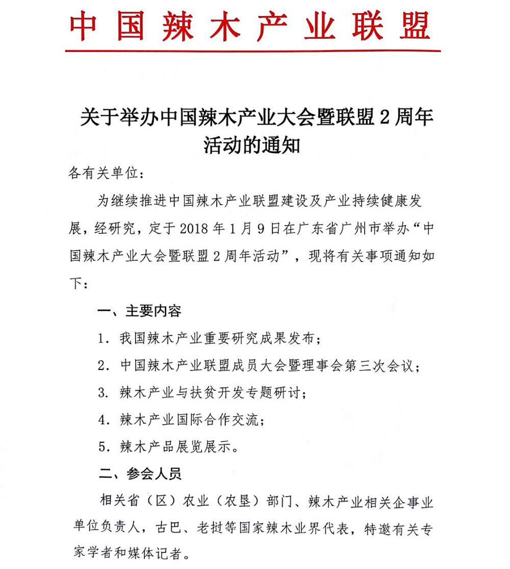 【辣木聯(lián)盟與大會(huì)】關(guān)于舉辦中國辣木產(chǎn)業(yè)大會(huì)暨聯(lián)盟2周年活動(dòng)的通知