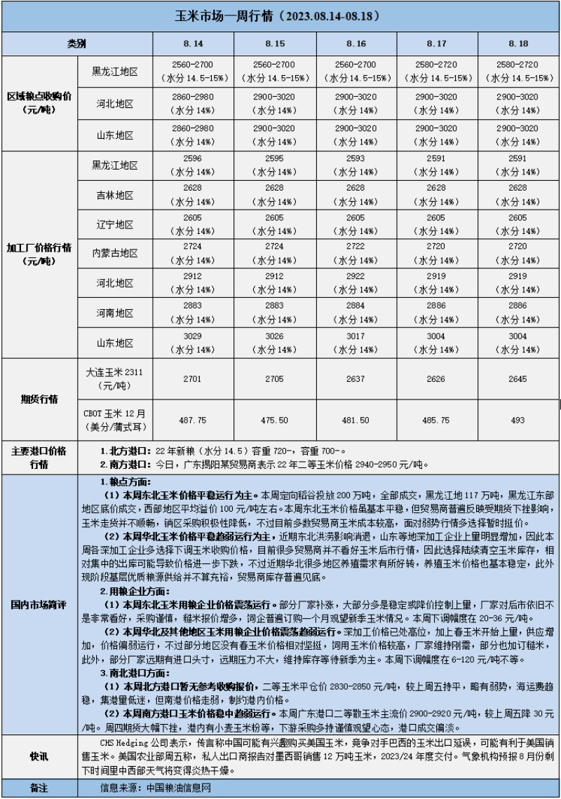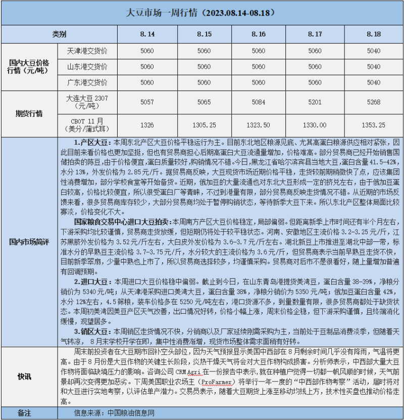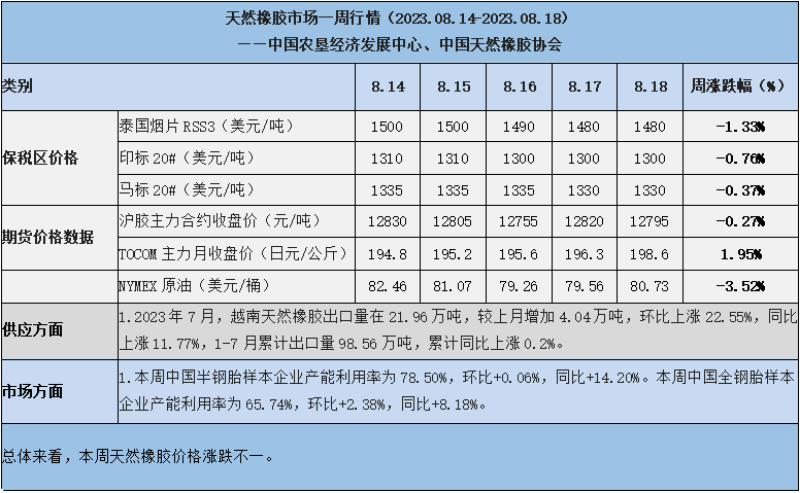 天然橡膠、大豆、玉米市場一周行情(2023.08.14-08.18)