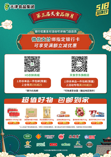 第三屆“天食灶物節(jié)”期間,消費(fèi)者可通過(guò)關(guān)注“農(nóng)鮮生活”微信公眾號(hào),或在京東商城搜索“天津食品集團(tuán)旗艦店”,享受天津食品集團(tuán)推出的系列優(yōu)惠活動(dòng)。