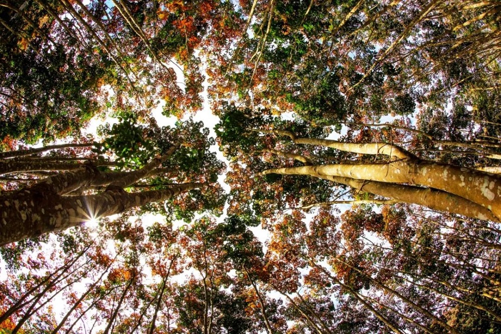 冬季橡膠林仰望,五彩斑斕美如畫。李云生 攝