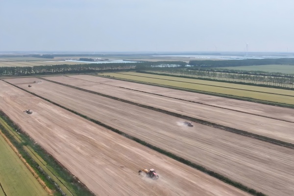 臨海農(nóng)場堅(jiān)持科學(xué)規(guī)劃、分步實(shí)施的原則,結(jié)合實(shí)際需求,安排項(xiàng)目實(shí)施團(tuán)隊(duì)對全場農(nóng)田展開全面勘察測繪,充分考量土壤類型、地形地貌及種植需求等因素,制定詳細(xì)的平整方案,明確了田塊大小、高程標(biāo)準(zhǔn)及溝渠配套規(guī)劃等關(guān)鍵內(nèi)容。方案確定后,迅速投入實(shí)施階段,精心做好機(jī)械投入和人員安排,共投入平整機(jī)、挖掘機(jī)、運(yùn)土拖拉機(jī)等大型平整機(jī)械23臺套,組建了一支23人的項(xiàng)目實(shí)施團(tuán)隊(duì),分成3組協(xié)同作業(yè)。作業(yè)中堅(jiān)持“降成本不降標(biāo)準(zhǔn)、提效率更提質(zhì)量”的原則,嚴(yán)格執(zhí)行安全管理規(guī)范,每日強(qiáng)調(diào)機(jī)械操作流程與現(xiàn)場防護(hù)要求,配備反光警示服、安全帽等防護(hù)裝備,設(shè)置作業(yè)區(qū)隔離帶,安排專人巡查設(shè)備運(yùn)行狀態(tài)。“三夏”期間,小組成員從清晨五點(diǎn)半奮戰(zhàn)到晚上9點(diǎn),采用“削高填低”的作業(yè)方式,搭載北斗導(dǎo)航的平整機(jī)精準(zhǔn)作業(yè),嚴(yán)格將土地平整誤差控制在3厘米以內(nèi),為后續(xù)規(guī)?;N植和精細(xì)化管理奠定了堅(jiān)實(shí)基礎(chǔ)。