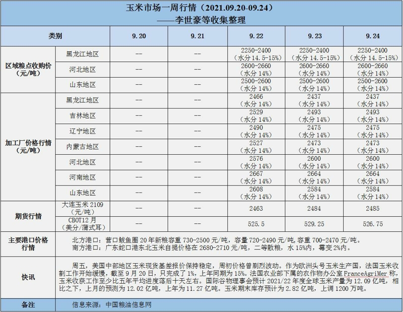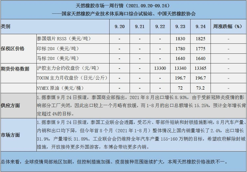 天然橡膠、大豆、玉米市場(chǎng)一周行情(2021.09.20-09.24)