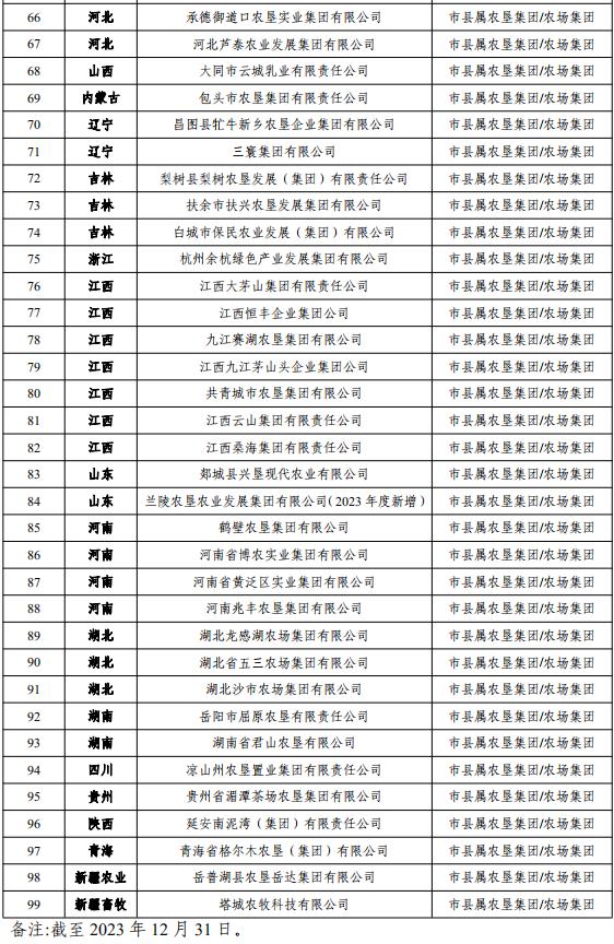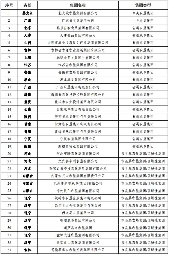 全國農墾企業(yè)集團名單及分類