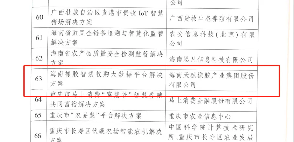 近日,農業(yè)農村部信息中心公布了2024年智慧農業(yè)建設典型案例,海南橡膠的《海南橡膠智慧收購大數據平臺解決方案》成功入選,標志著海南橡膠在智慧農業(yè)領域的積極探索和應用成果得到了國家級認可。