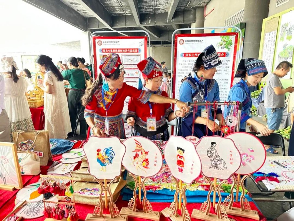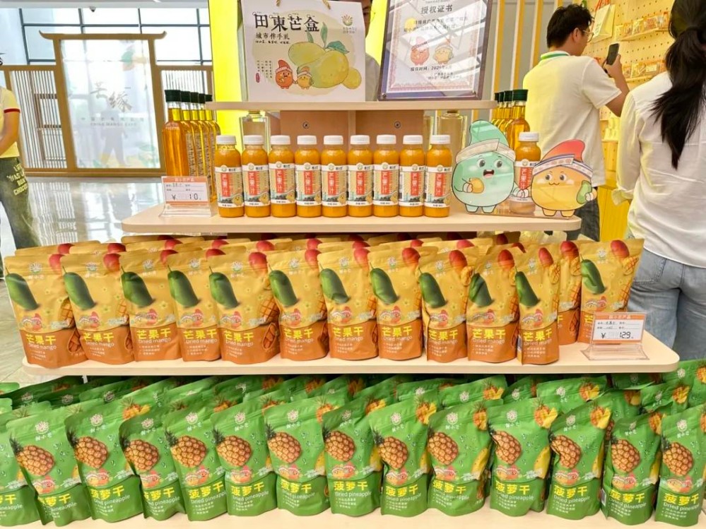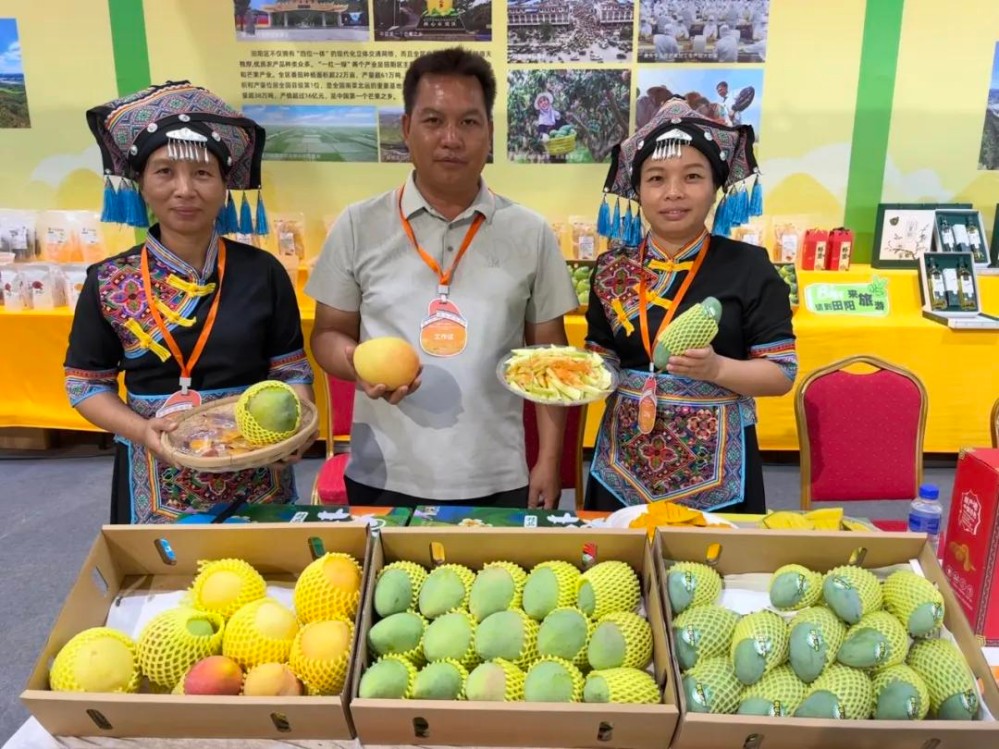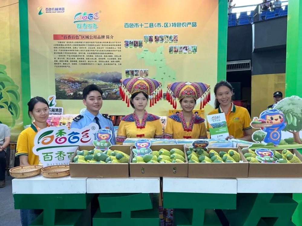 活動(dòng)中,百色12個(gè)縣(市、區(qū))農(nóng)特產(chǎn)品和文創(chuàng)產(chǎn)品,以及來(lái)自國(guó)家芒果種植資源圃的“熱品4號(hào)”“桂熱芒10號(hào)”“泰國(guó)金白花”等百余種芒果新品種(品系)集中亮相?!懊⒐N質(zhì)資源太神奇了,單單是種皮就有這么多顏色!”“芒果蘸辣椒面我還是第一次嘗試!”“甜小芒這個(gè)IP既有廣西的民族特色,又有農(nóng)業(yè)特色!”每個(gè)展位前都擠滿了觀眾,大家嘗味道、問(wèn)價(jià)格,熱鬧非凡。