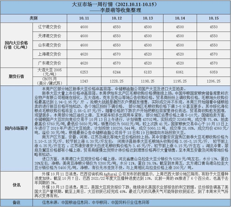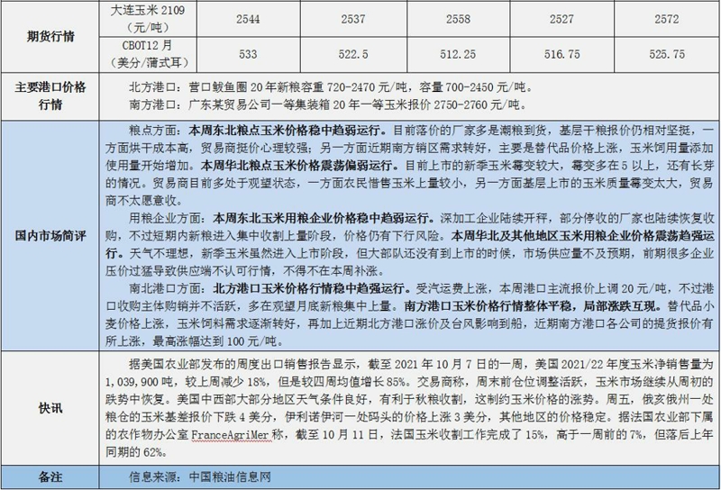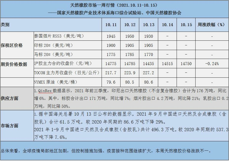 天然橡膠、大豆、玉米市場一周行情(2021.10.11-10.15)