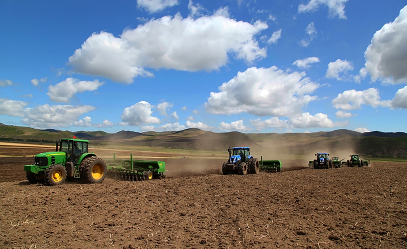 你看,春天的腳步在牧場(chǎng)走過,消融了山間的冰雪、褪去了一冬的寒冷。清早起來,雪白的羊群尋著泛綠的青草漫步在山坡上,星星點(diǎn)點(diǎn)、悠然自得,仿佛天上的白云倒映下的影子。小小的牧場(chǎng),在這一方寧?kù)o的山水之間,伴著裊裊升起的炊煙也慢慢變得生動(dòng)活潑起來。北方的春天,來得遲去得快。在春的尾巴,隆隆的機(jī)聲打破了田野許久的沉寂,一臺(tái)臺(tái)或紅色或綠色的大型拖拉機(jī)牽引著播種機(jī)、鎮(zhèn)壓器往來穿梭,它們用鐵犁劃開沉睡一冬的土地,讓泥土的清香盡情宣泄在天地之間,是農(nóng)墾人在大自然中演奏出的豐收序曲。