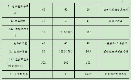 2、240-350畝標(biāo)準(zhǔn)成本,機(jī)械配套齊全,雇傭零工,如直收作業(yè)一畝可盈利60元,按額外作業(yè)300畝計(jì)算,折合地主家畝成本減少51-78元/畝,即畝成本在1002.6-1031.6元/畝。額外作業(yè)面積越大折合機(jī)械折舊費(fèi)用越低,成本越低。